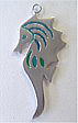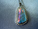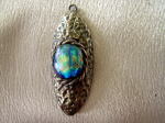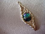 | このガラスはバーナー(トンボ玉を作る技法)で作りました。地金でガラスが入る枠を作り、ガラスを入れて電気炉で焼成しました。フクリン留めの技法で作ることも可能です。 | ||