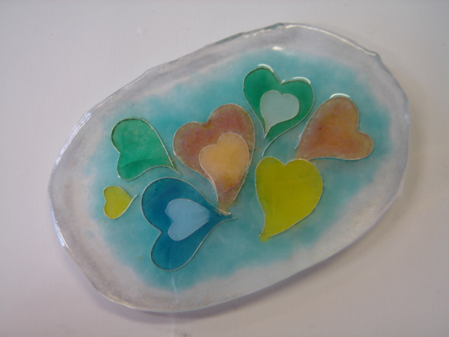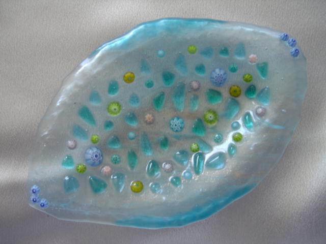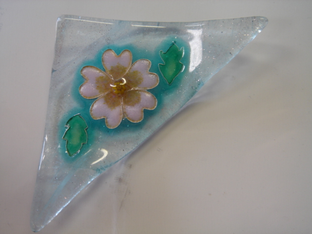 ガラスのパーツを組み合わせてデザインし、電気炉で焼成します。数あるガラス工芸の中でも比較的、簡単な工芸です。